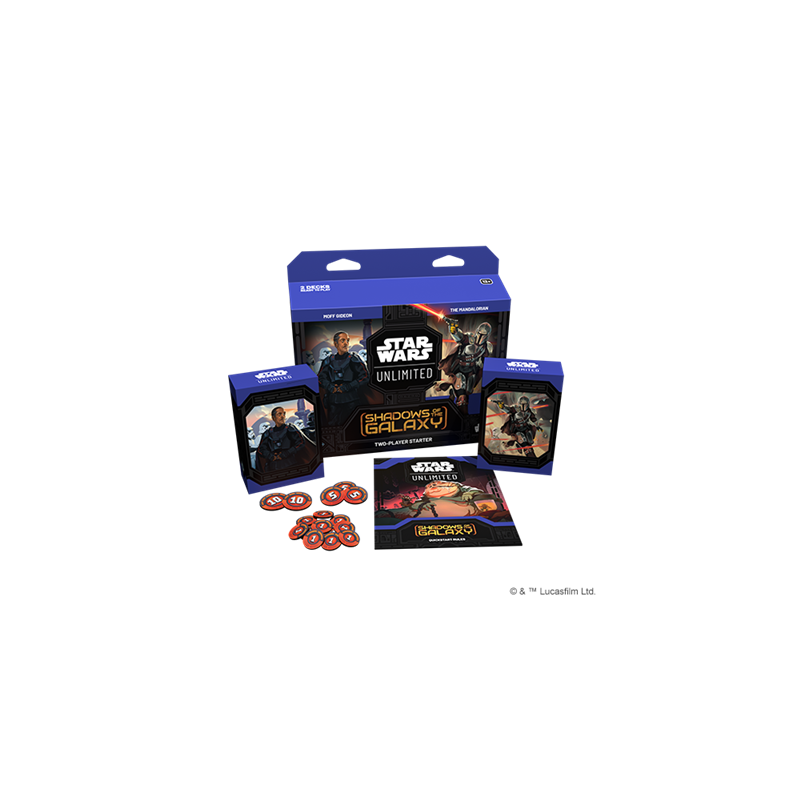Enter a galaxy of endless possibilities in Star Wars™: Unlimited! In this fast-paced, easy-to-learn trading card game, you and your opponent face off in exciting head-to-head battles full of iconic Star Wars characters. In the Two-Player Starter for the game’s second set, Shadows of the Galaxy, you’ll find two fully built, ready-to-play decks for you and a friend to dive in and start learning the game. Outmaneuver your foes as the Mandalorian or overwhelm your