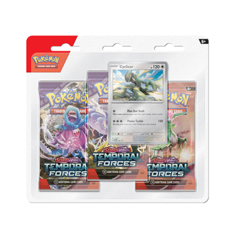 The ranks of Ancient and Future Pokémon continue to grow! Walking Wake ex breaks free of the past alongside Raging Bolt ex, while Iron Leaves ex delivers high-tech justice with Iron Crown ex. Outside Area Zero, Wugtrio and Farigiraf shift types as Tera Pokémon ex, and Pokémon Trainers everywhere prepare for the return of ACE SPEC cards with uniquely powerful effects. A rupture in time brings wild beasts and cyber visions to battle in the Pokémon TCG: Scarlet & Violet—Temporal Forces expansion!