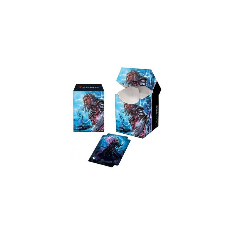 100+ Deck Boxes for Magic: The Gathering feature a vibrant, full-color artwork and includes a deck divider. Made with archival-safe, non-PVC, rigid polypropylene materials, you can store up to 100 double-sleeved cards with confidence. The self-locking lid keeps your cards securely stored when not in use, while also offering easy access. Sized for standard size trading cards.