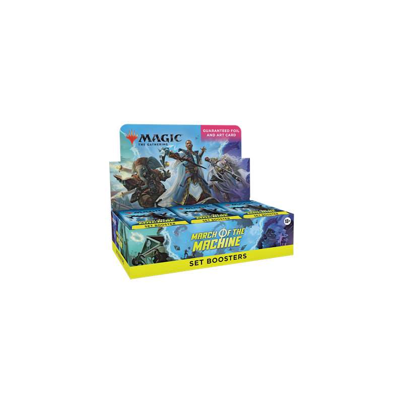 The March of the Machine Jumpstart Booster Box contains 18 March of the Machine Jumpstart Boosters. Each booster has a theme. Just grab two packs and shuffle them together for wild combos and a unique gameplay experience that’s great for a quick game, for long-time fans looking to jump back in, or for a fun, approachable way to learn the game.