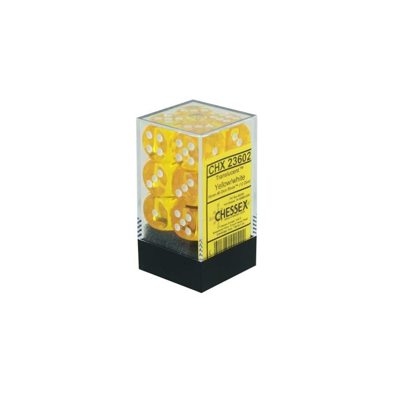 Chessex Translucent 16mm d6 with pips Dice Blocks (12 Dice) - Yellow w/white