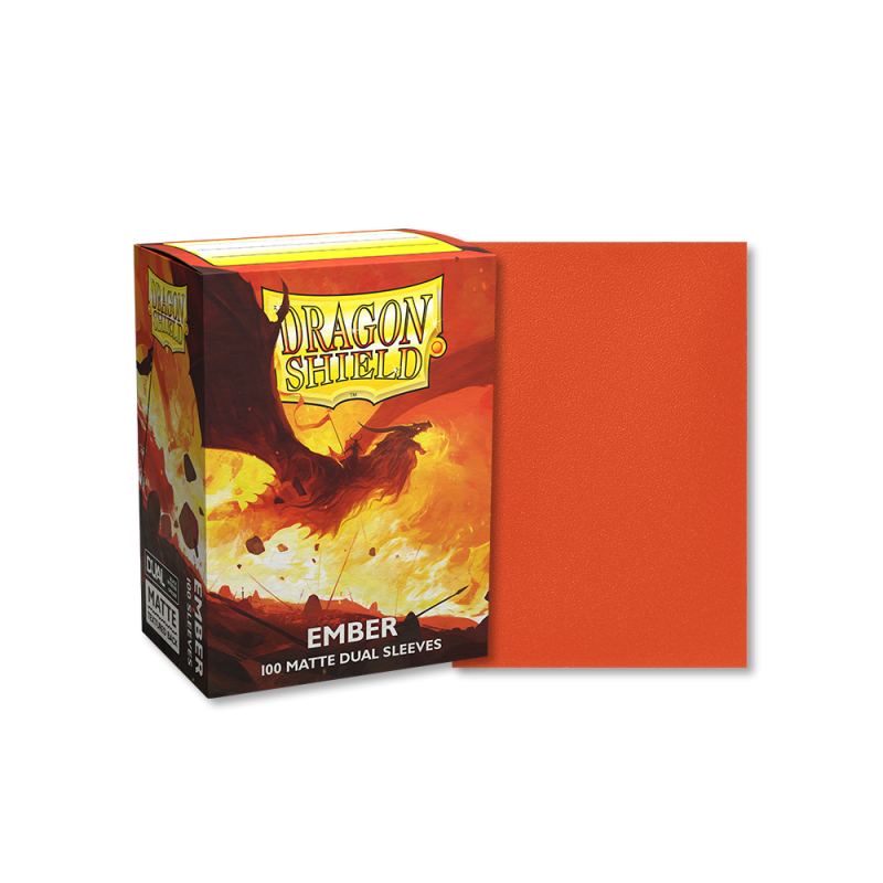 Dragon Shield Dual Matte sleeves. Fully opaque sleeves with a black interior, an elegant backdrop for black bordered cards. Clear front and a textured matte back.