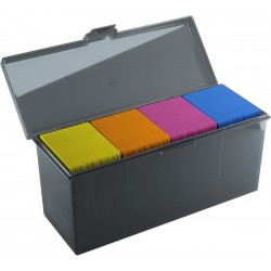 Full decks, dice, tokens or 320 double-sleeved cards: there is a lot that the Fourtress can hold and protect! This sturdy box is available in 5 different semi-transparent colors, allowing its contents to be easily identified. The integrated lock keeps it safely closed, while two inner walls can be removed to create bigger compartments. The boxes are stackable, so they are both perfect travel companions and a great storage solution at home.