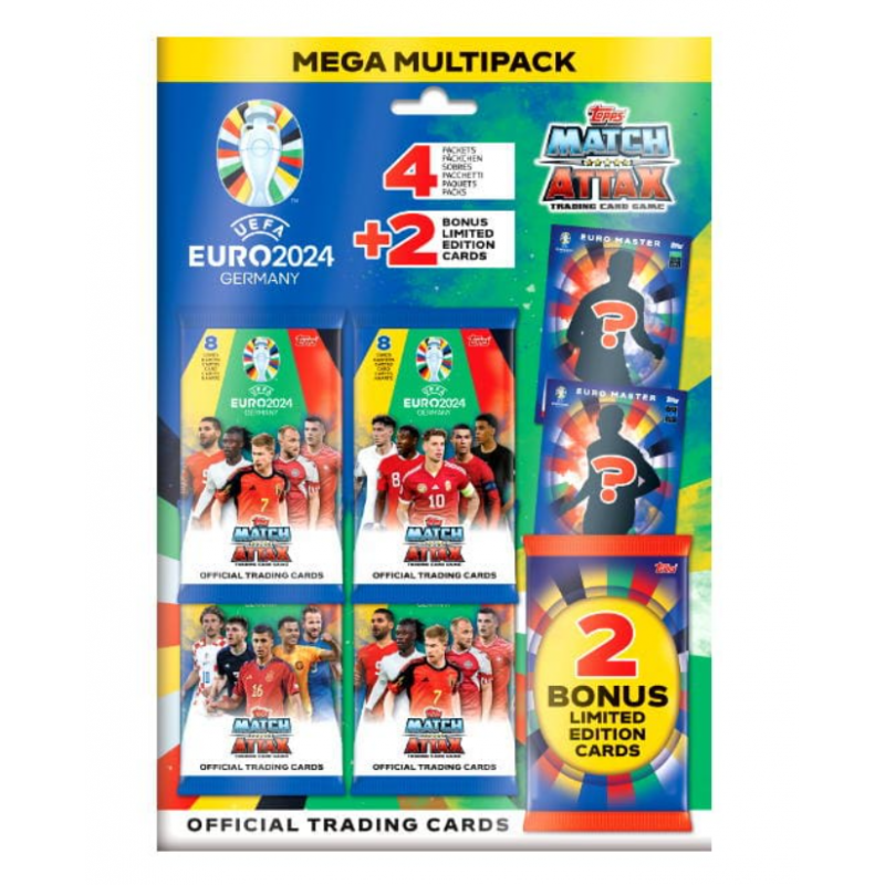 MEGA Multipack para a coleção de "Topps EURO 2024 Match Attax" Trading Cards com o seguinte conteúdo: