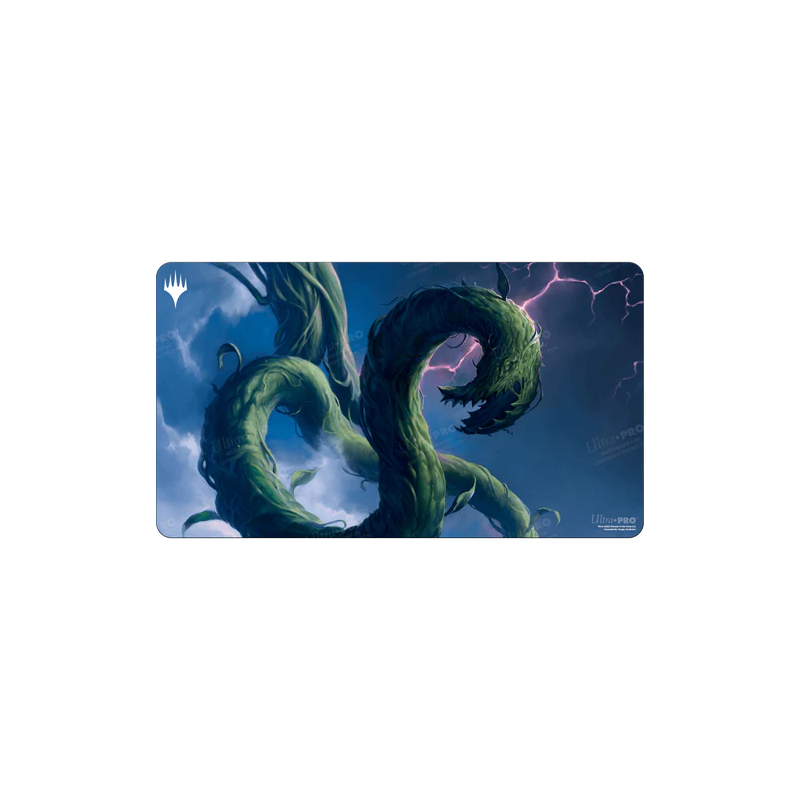 Playmats featuring popular Magic: The Gathering artwork. Made with a soft fabric top to reduce damage to cards during play and a non-slip rubber backing to keep the playmat from shifting during use, playmats enhance the gameplay experience. With dimensions of approximately 24 in. x 13.5 in., a playmat also makes an excellent oversize mousepad for home or office.
