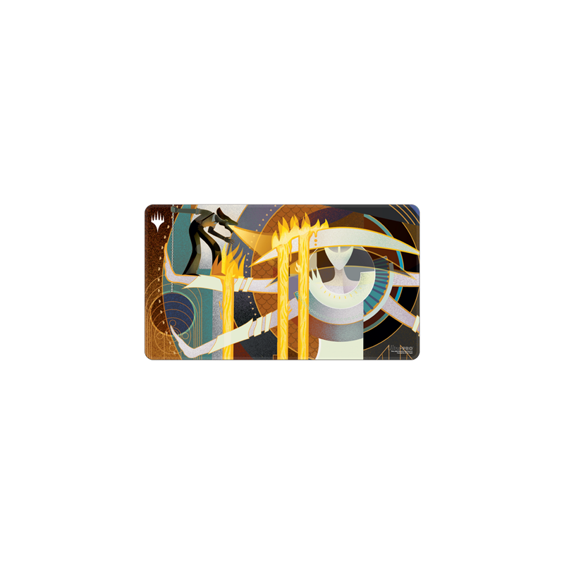 Playmats featuring popular Magic: The Gathering artwork. Made with a soft fabric top to reduce damage to cards during play and a non-slip rubber backing to keep the playmat from shifting during use, playmats enhance the gameplay experience. With dimensions of approximately 24 in. x 13.5 in., a playmat also makes an excellent oversize mousepad for home or office.