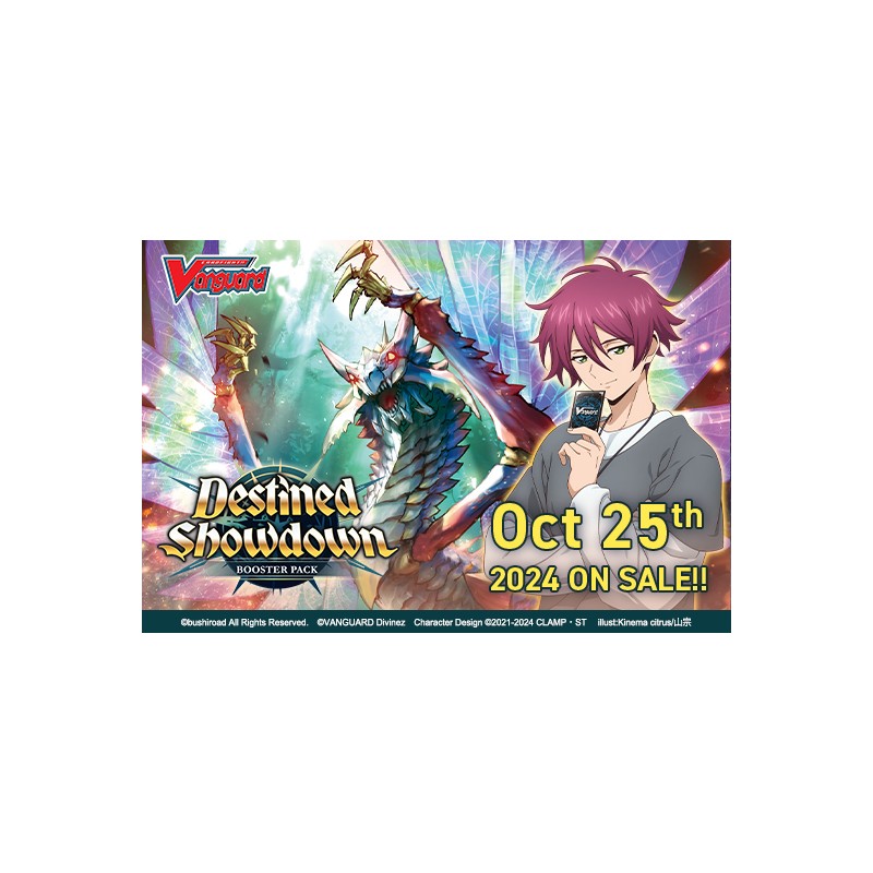 Featuring cards that appear in the TV animation "CARDFIGHT!! VANGUARD Divinez Season 2", broadcasting from July 2024! "Destined Showdown" includes 5 Destined One units, and like the Fated Ones, they each have their own unique "Divine Skill"!