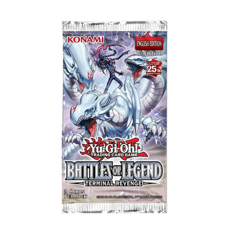 The complete Battles of Legend: Terminal Revenge booster set contains a mix of Secret and Ultra Rares, with some cards also available as Quarter Century Secret Rares.