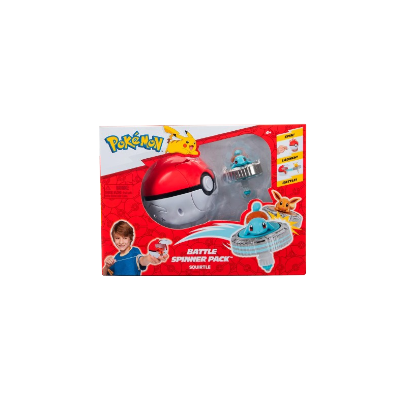 Enfrenta os teus adversários com Pokémon Battle Spinners ! O conjunto inclui um Battle Spinner com Pikachu, Squirtle, Charmander ou Eeve. Carrega os Battle Spinners nos lançadores Poké Ball Spinner e puxa o cabo. Prime o botão superior de cada Poké Ball para lançar os spinners de batalha e entra em ação! Cada spinner apresenta detalhes autênticos e parece ter saído diretamente da tua série Pokémon.