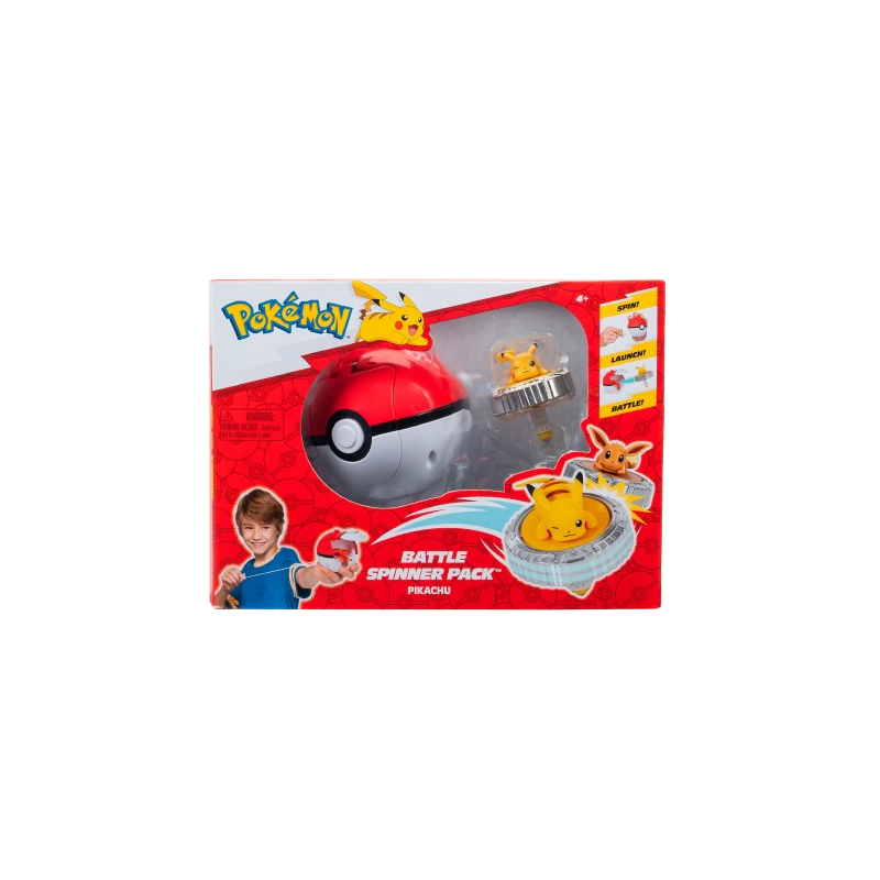 Enfrenta os teus adversários com Pokémon Battle Spinners ! O conjunto inclui um Battle Spinner com Pikachu, Squirtle, Charmander ou Eeve. Carrega os Battle Spinners nos lançadores Poké Ball Spinner e puxa o cabo. Prime o botão superior de cada Poké Ball para lançar os spinners de batalha e entra em ação! Cada spinner apresenta detalhes autênticos e parece ter saído diretamente da tua série Pokémon.