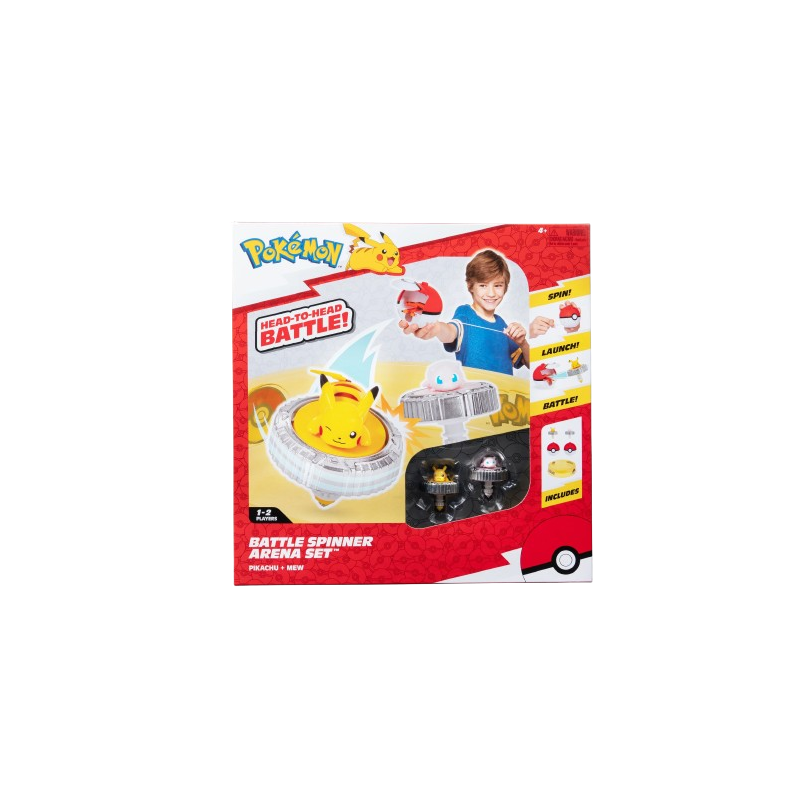 Enfrenta os teus adversários com o conjunto Pokémon Arena de Combate Battle Spinner! O conjunto inclui uma Battle Arena, dois Battle Spinners com Pikachu e Mew e duas Poké Ball Spinner Launchers. Carrega os Battle Spinners nos lançadores Poké Ball Spinner e puxa o cabo. Prime o botão superior de cada Poké Ball para lançar os spinners de batalha para a Battle Arena e entra em ação! Cada spinner apresenta detalhes autênticos e parece ter saído diretamente da tua série Pokémon.