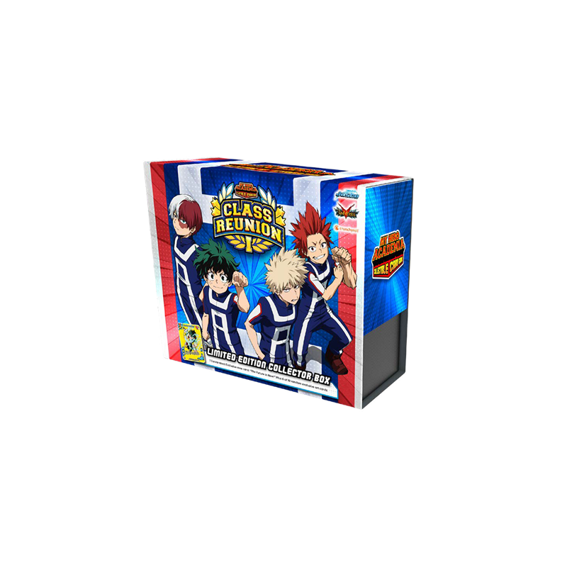 Celebrate our one year anniversary of the MY HERO ACADEMIA COLLECTIBLE CARD GAME Class Reunion! The Class Reunion Collector Box introduces 11 brand new cards to the game. Collect these cards in gorgeous foil! Each Deluxe Collector Box contains 6 random foil cards from a set of 10 alongside 1 guaranteed new foil card; “The Future is NOW!”, 8 My Hero Academia: Set 4 League of Villains booster packs, and a plethora of premium level gaming aids! The perfect gift for collectors and players alike!