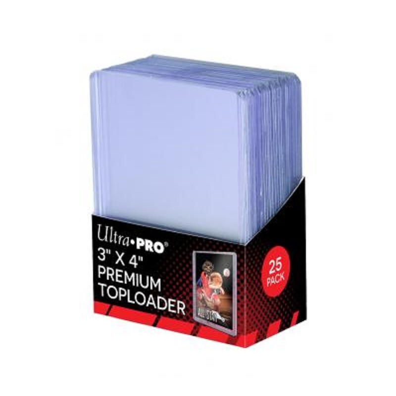 Protect and display your cards with Ultra PRO's premium toploaders. Featuring high-quality additives that both enhance the protection and clarity of the plastic, each Toploader is made to fit standard size cards (2-1/2" x 3-1/2"). Rigid plastic encloses card and keeps it clean while preventing damage. 25 Toploaders per pack.