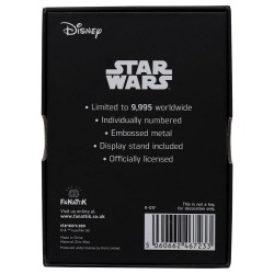 Este metal colecionável de Star Wars oficialmente licenciado é limitado a 9.995 em todo o mundo e numerado individualmente.