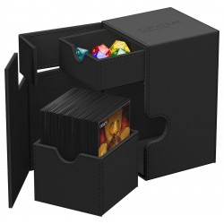 The quintessential Ultimate Guard deck box: a timeless monocolored design with strong magnetic closure, card and dice trays for safe storage of your deck, and a resistant but smooth Xenoskin surface. Looking for additional safety? With room for 100 double-sleeved or 120 single-sleeved cards in standard size, the Flip'n'Tray 100+ has it all.
