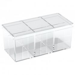 The Stack´n´Safe Box 480 from UG´s line of high quality card boxes is made of clear polystyrene and can hold up to 480 (6 x 80) cards in sleeves (e.g. ULTIMATE GUARD Supreme Sleeves). The sturdy box has 6 equally sized compartments and features three removable dividers. The easy to remove lid fits perfectly and keeps your cards safely in place.